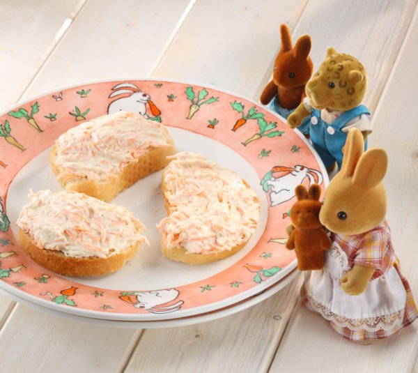 Húsvét-nyuszi, nyuszi-répa. Egészséges, vidám szendvicskrém, nemcsak húsvétra. Friss kenyérre vagy pirítósra kenhetjük, de melegszendvicsre is felhasználhatjuk.