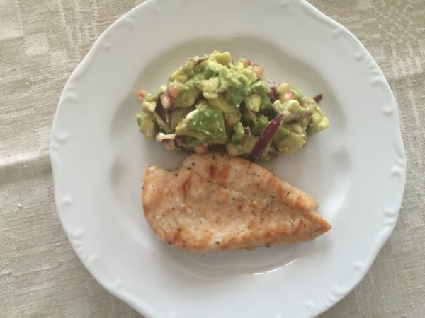 A japán elvnek, miszerint az ételek nézzenek ki úgy, mint a festő palettán a színek ez a saláta megfelel. Egyszerűen elkészíthető, tetszőlegesen variálható, önálló fogásként és köretként is kiváló. Két dologra kell figyelni csupán: a gránátalma megfelelő puculására és arra hogy érett avokádót használjunk.