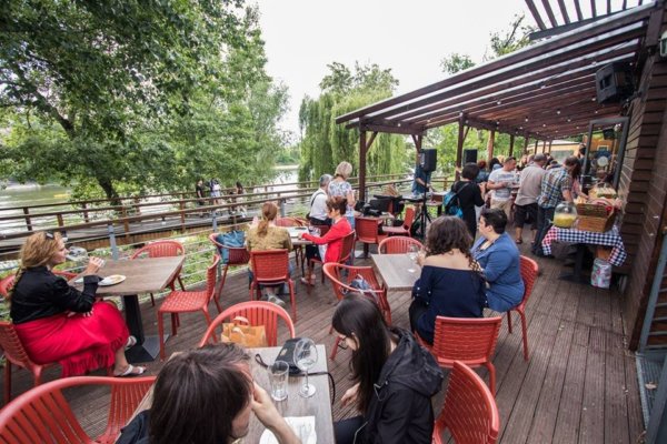 Jazzpiknik beharangozó a Kopaszi-gáton. Zöld felsőben ülök, jobbomon – piros kardigánban- Mirelle.