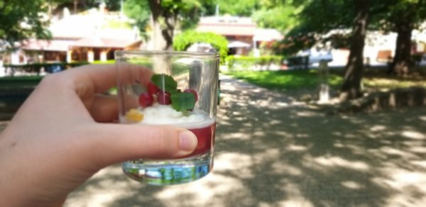 Ribizlis pohárdesszert. Helyi catering cég készítette az ebédünket. Közben lehetőség nyílt visszakóstolni a borokat, már aki bírta.